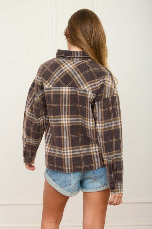 Ruffle collar button down blouse with ruffle trim on the cuffs