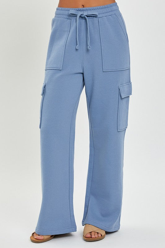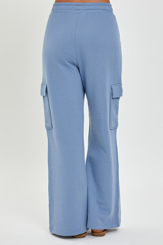 Blue cargo wide leg sweatpants