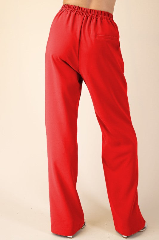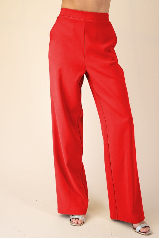 Red high waist wide leg pants