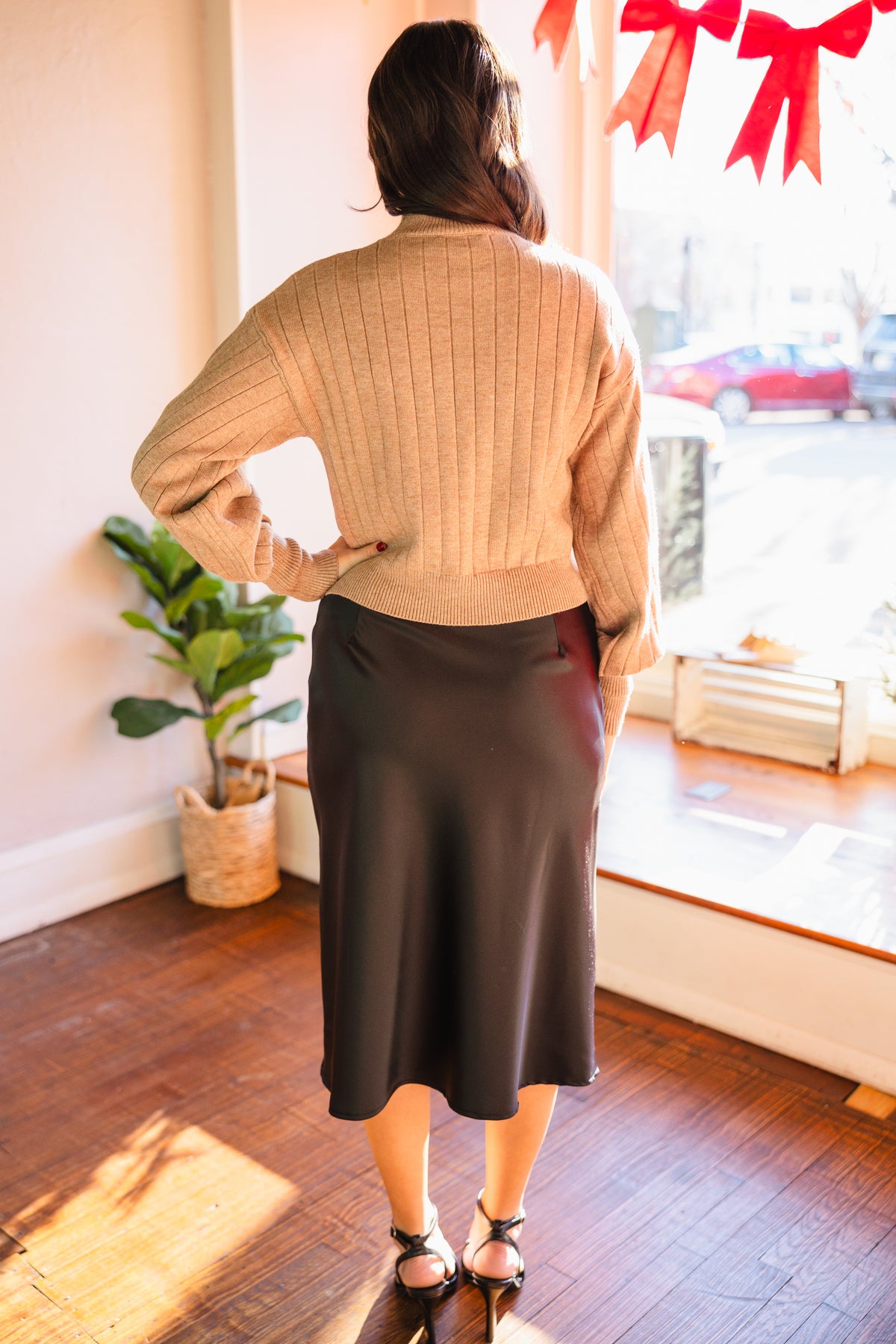 Black satin midi skirt