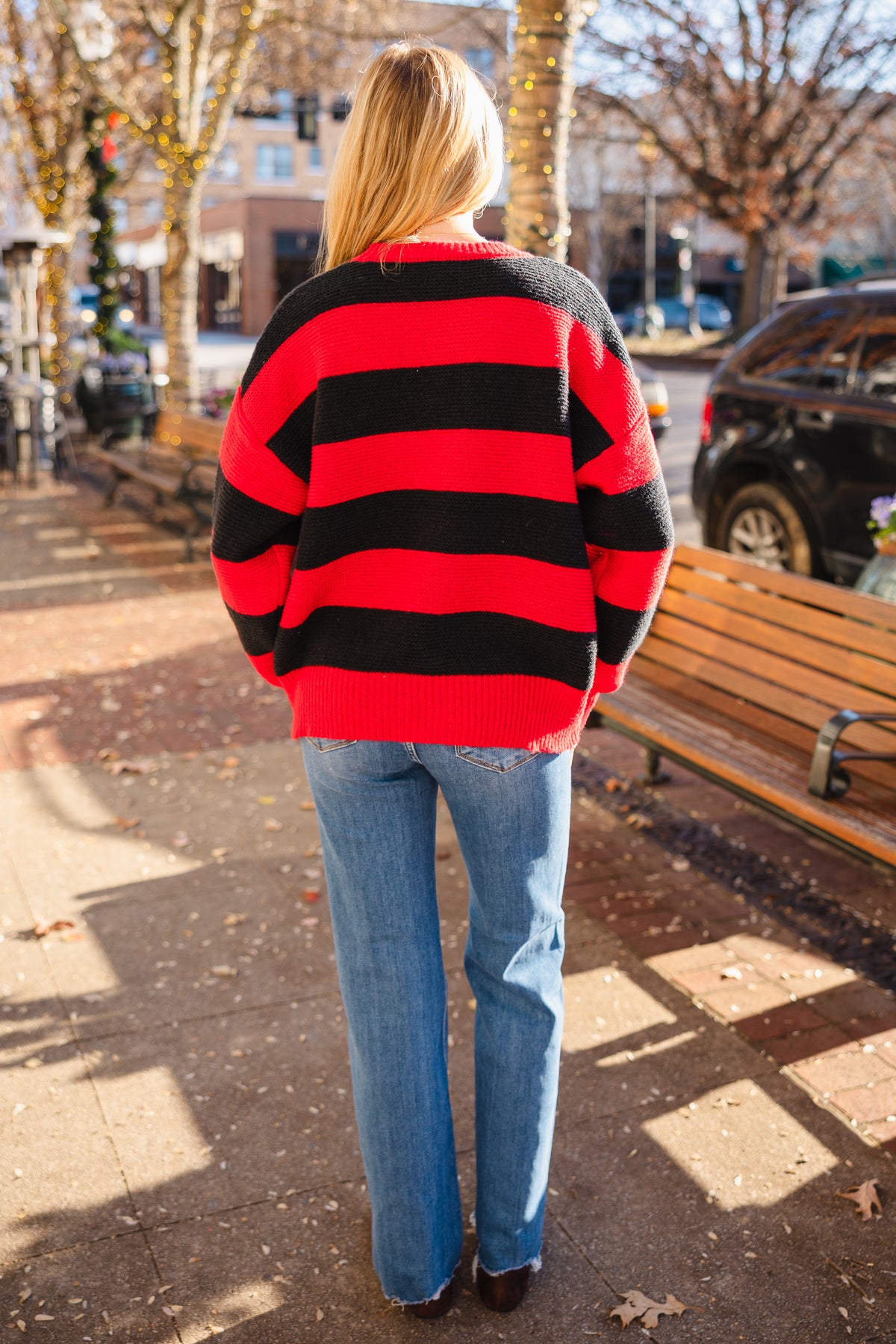 Red & black striped sweater