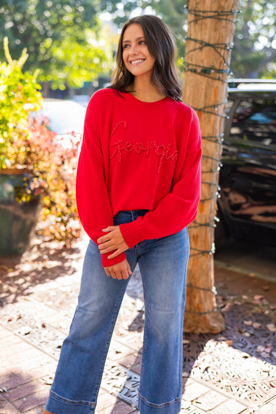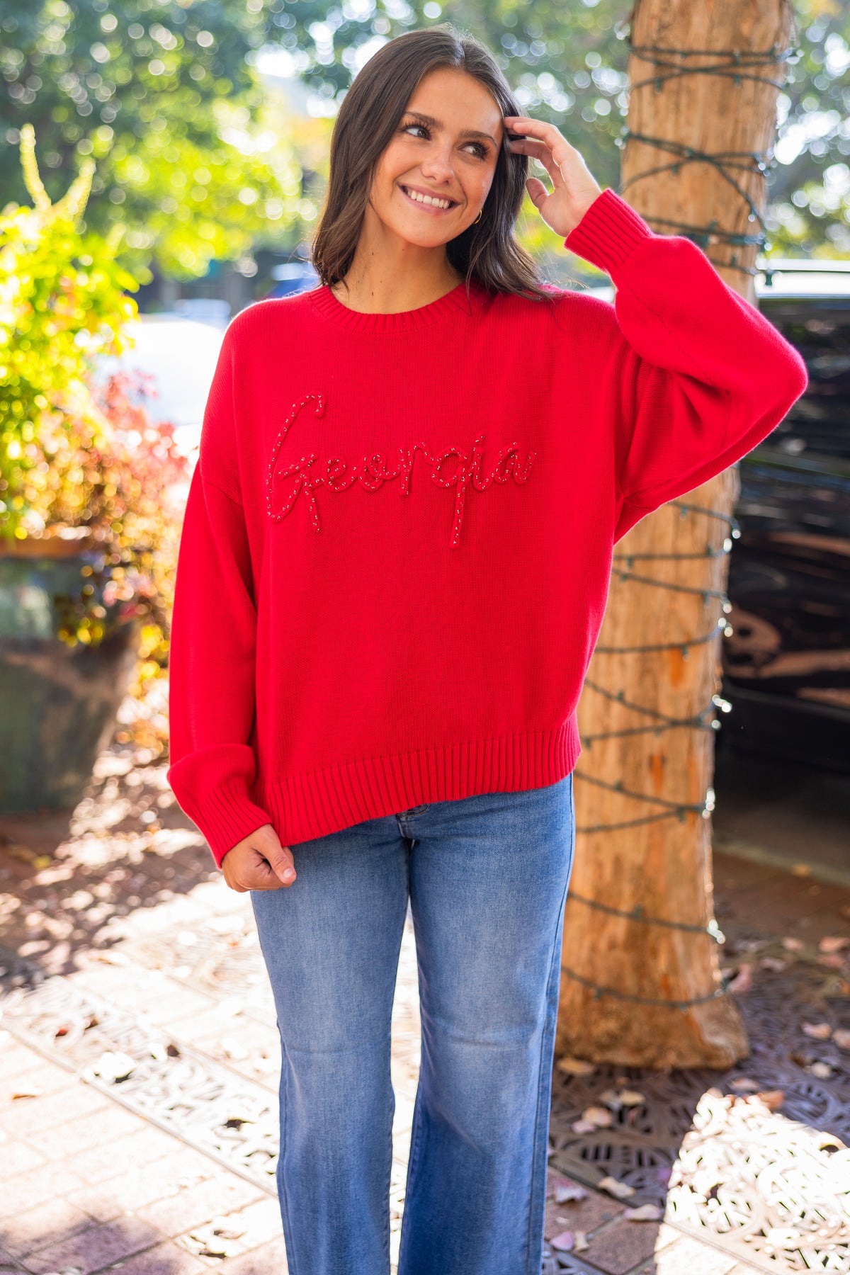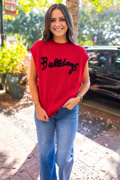 Red Georgia Bulldogs embroidered sleeveless sweater