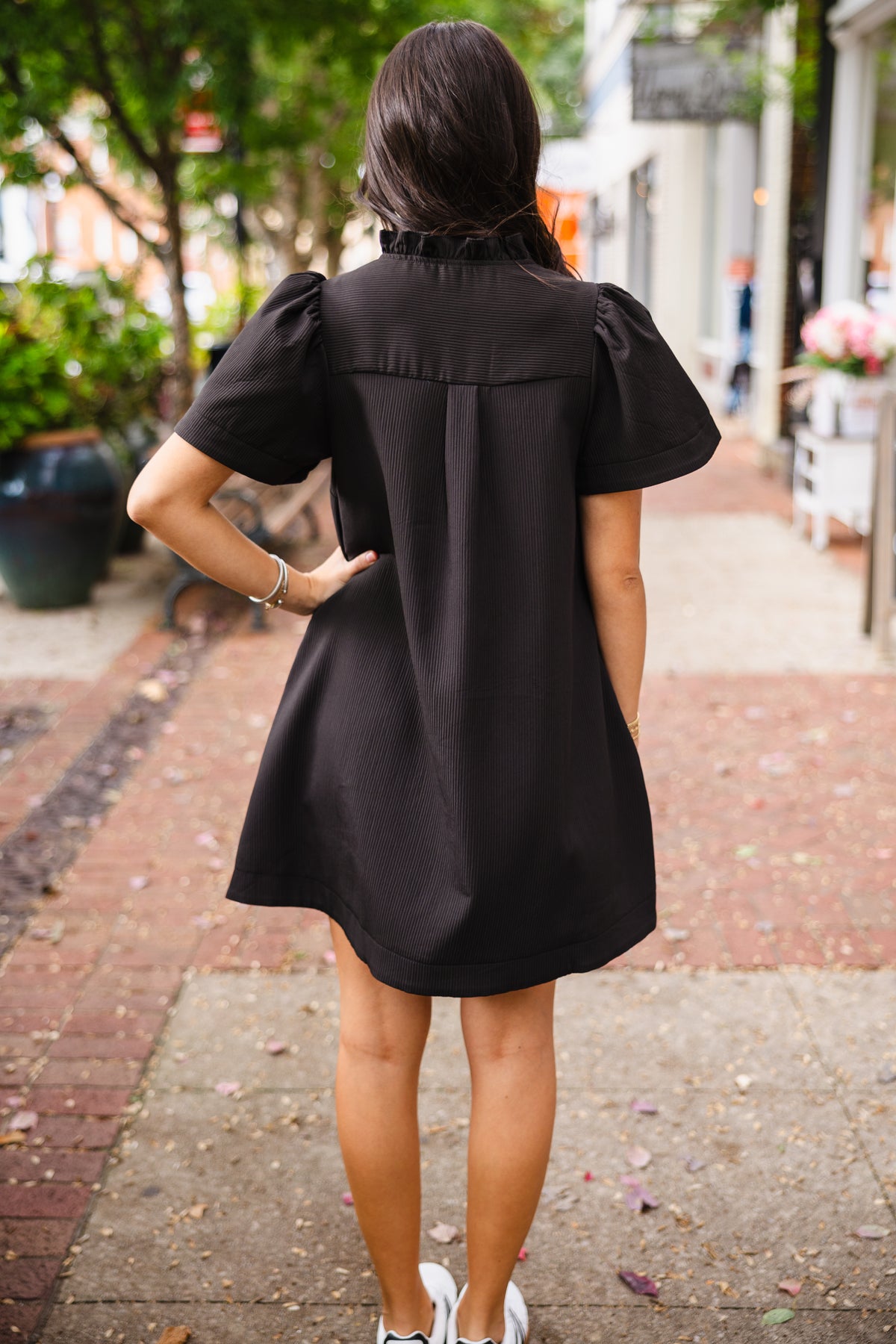Short sleeve V neck dress with ruffle trim at the color, mini rib with side pockets