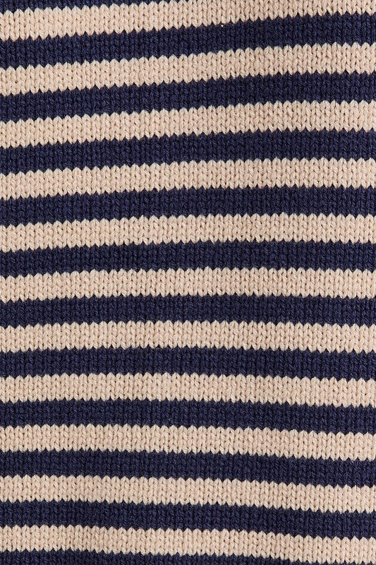 Navy and taupe stripe sweater pants with a drawstring waistband